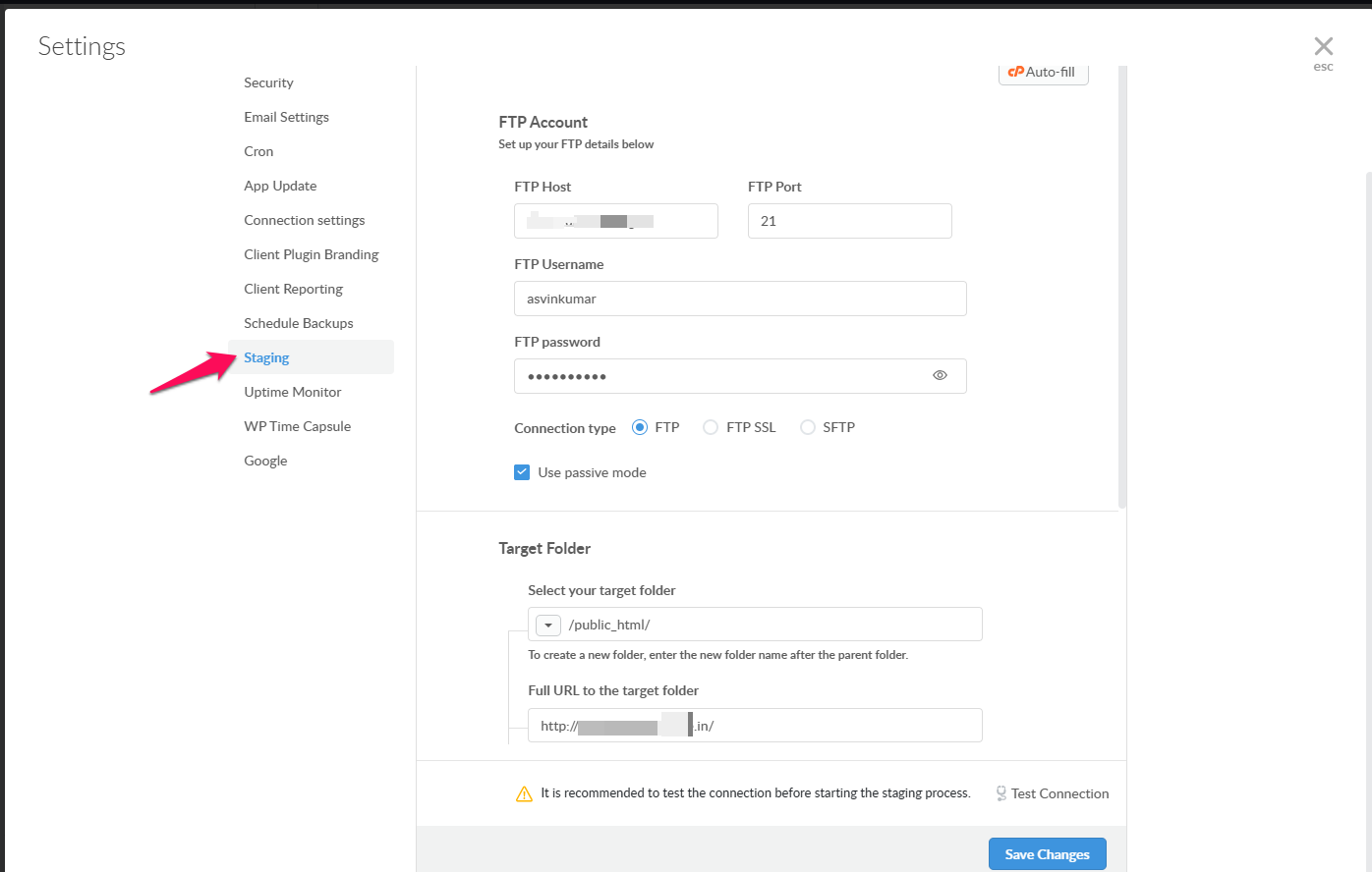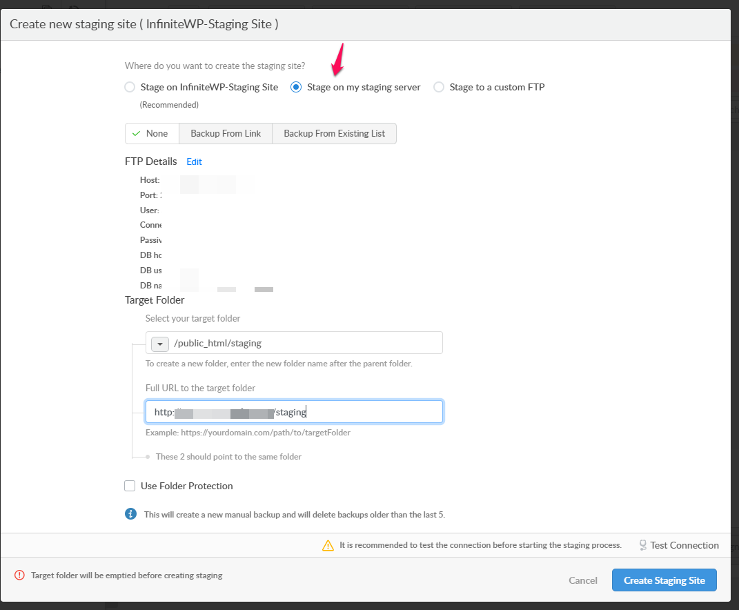 3. To create Staging site on separate FTP server